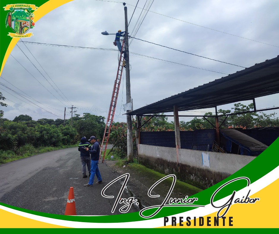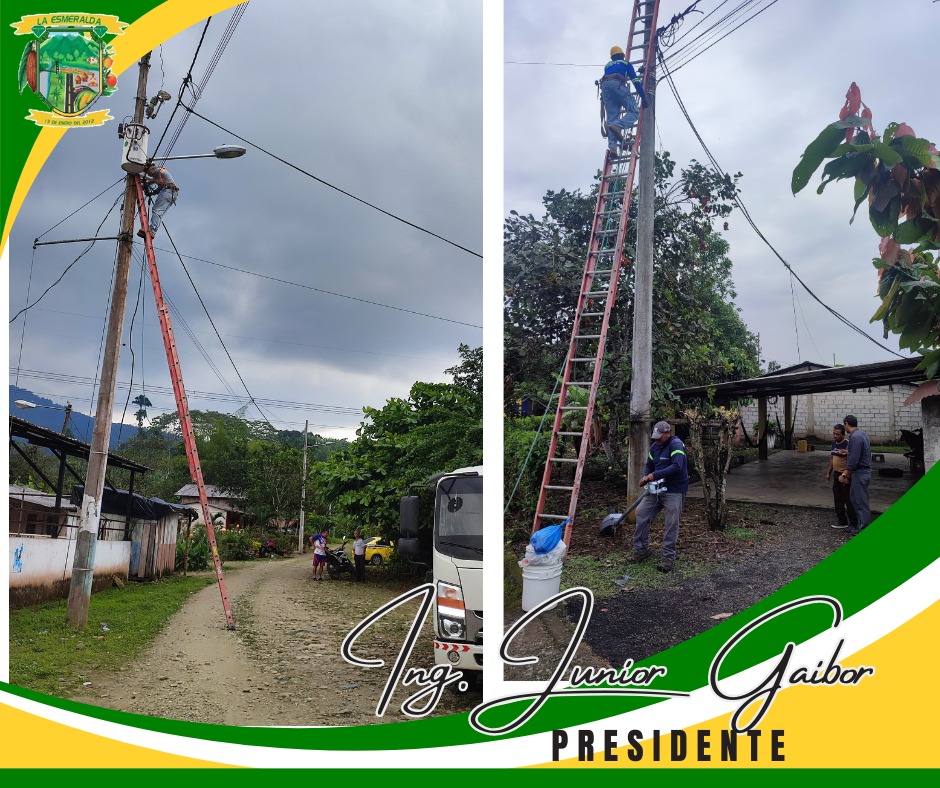 Colocación de 64 Lámparas en los diferentes sectores de la Parroquia La Esmeralda: Azucena, Isla del Tesoro, El Candilito,San Jose , La Laguna, en la Via San Antonio , Arcangel San Miguel , Nena Chica, Nena Grande y en la Cooperativa Cristal, gracias al Señor Prefecto de Obras Ing. Johnny Terán Salcedo por ejecutar el Proyecto de Ilumina Tu Recinto en nuestra comunidad.