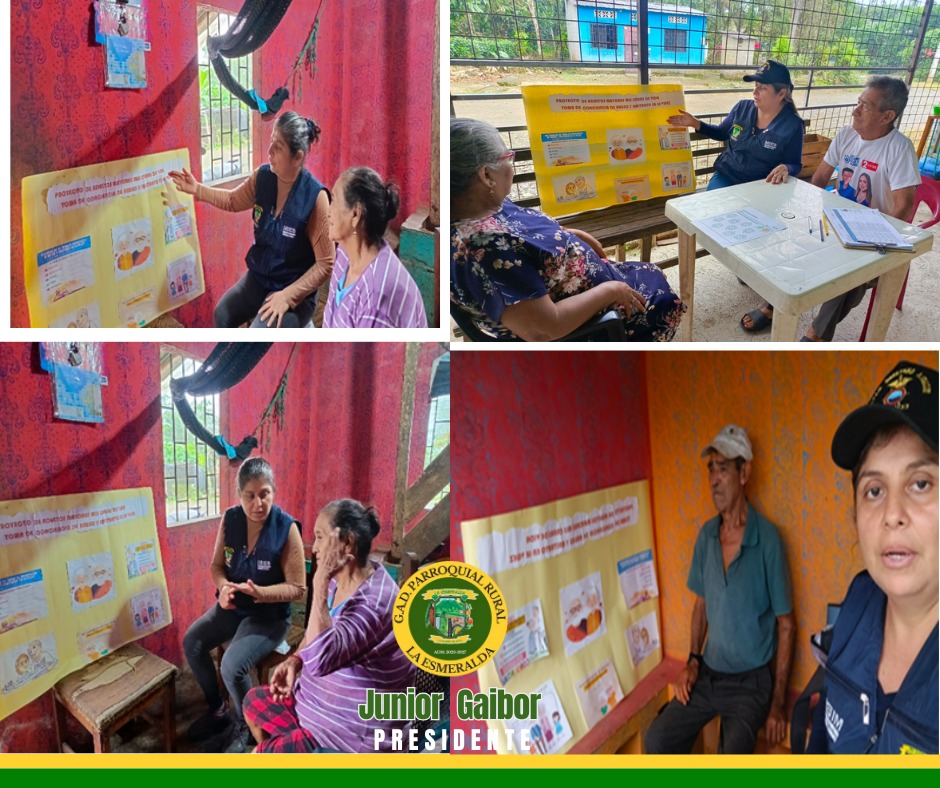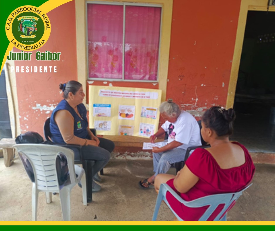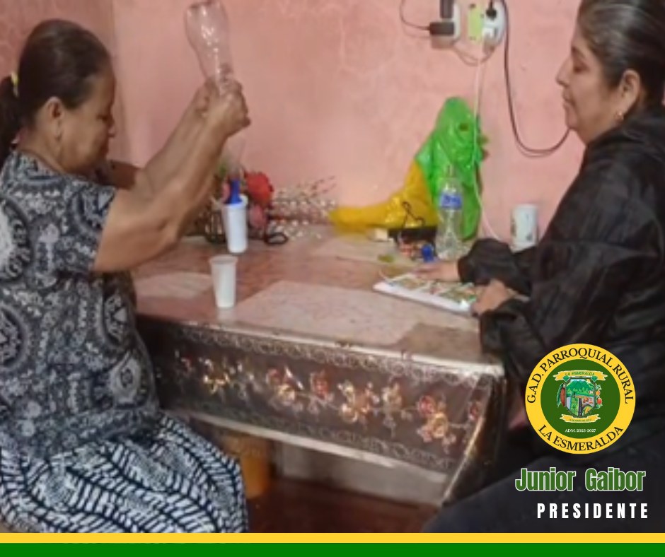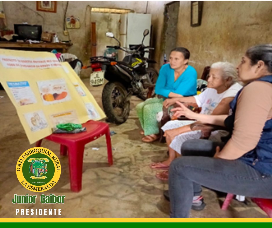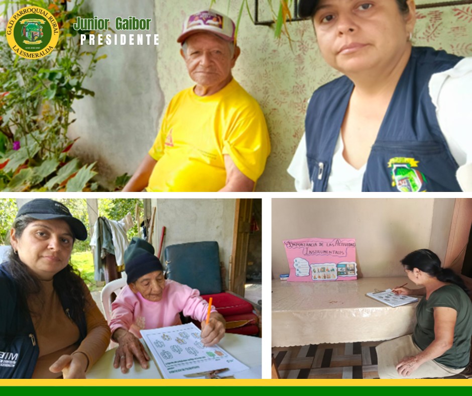 En cumplimiento con el convenio entre el MIES y el GAD Parroquial Rural La Esmeralda del proyecto de ATENCIÓN DOMICILIARIA PARA PERSONAS ADULTAS MAYORES SIN DISCAPACIDAD, seguimos visitando y realizando talleres en casa con nuestros adultos mayores.